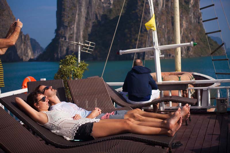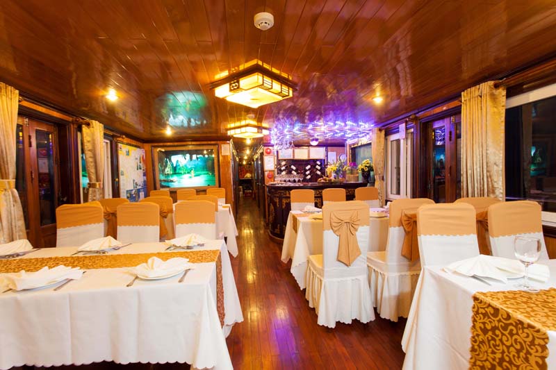 With 10 spacious cabins, tastefully furnished, its topside bar, a gourmet restaurant and a relaxed sundeck in fresh air, not to mention extraordinary levels of service, Halong Golden Star Cruise offers you service with style