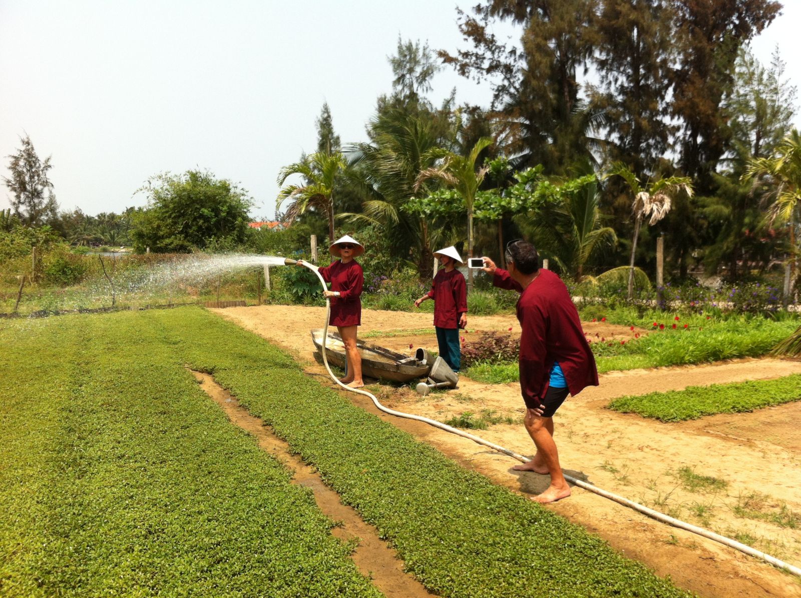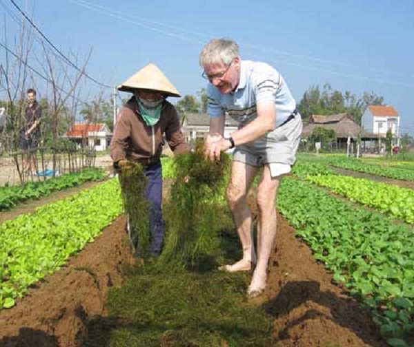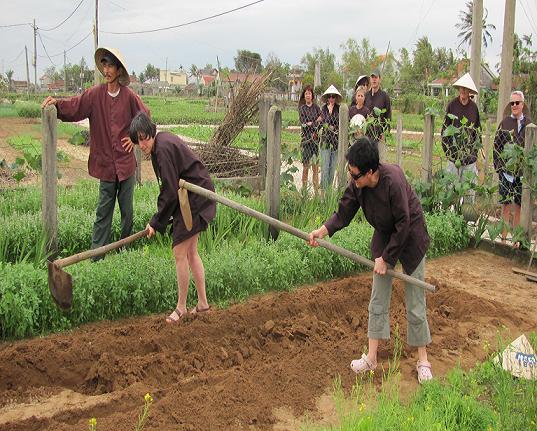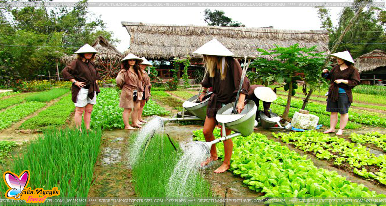 Walk around to sightseeing the charming green of vegetable garden. Gardening with the famers: cultivating, fertilizing, sowing sheet, watering vegetables…