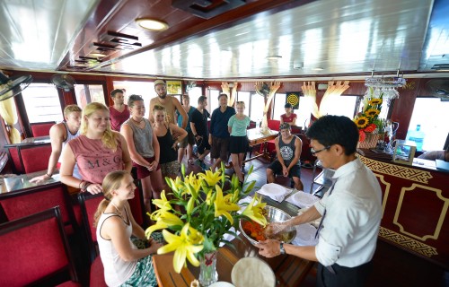 09:30 - Get on the cruise to attend the cooking class while cruising back Halong harbor