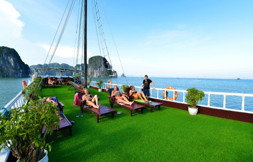 07:00 - Breakfast, fruits, coffee and tea will be served. Then visit the Surprising Cave – the most beautiful one in Halong Bay
