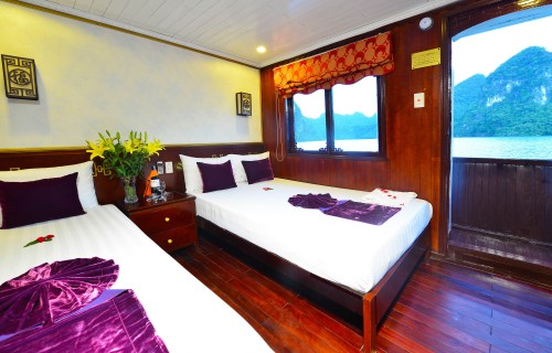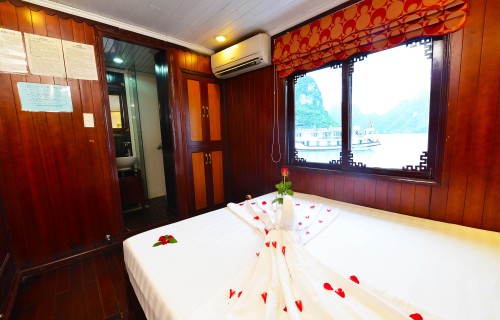 12:00 – 12:15 On arrival at Halong city, you will board your boat and you are warmly welcomed by professional and friendly crew. Check into cabin.