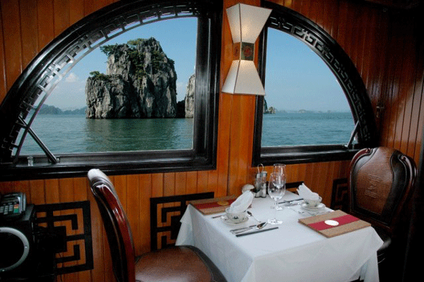 1.30 –3 15.00 : Have lunch while cruising to magnificent Bai Tu Long bay; admire the fascinating formations on the way.