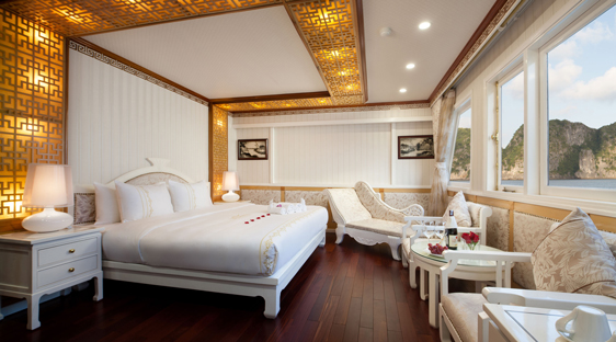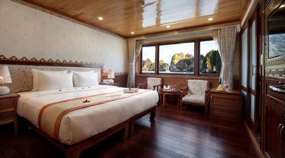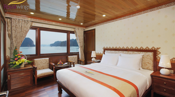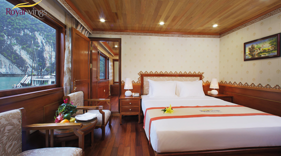 Here at Royal Wings Cruise, we are aiming to become one of the best 5 star cruise in Halong Bay. Our 20 ample, spacious and luminous rooms, their superior quality wooden furniture and a full range of luxury facilities and fabulous services make our cruise stand out as the ideal destination for who are looking for a luxury holiday in Halong bay- the world heritage. Our ample range of rooms comprise the following options: