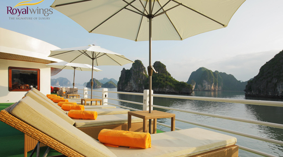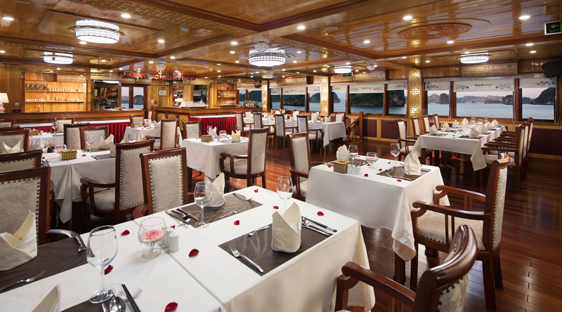 Designed in luxury simplified style with an inviting atmosphere and pleasant ambience, Royal Wings Cruise restaurant provides the perfect setting for an iconic, amazing traditional Vietnamese and international dinning experience. The galley delights in sending out artfully presented dishes from fresh local recipes, every delicate micro-green garnish perfectly in place.