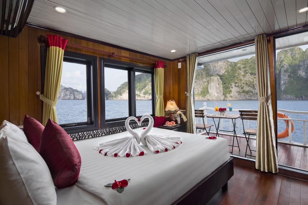 Viola Cruise 16 cabins are divided into three classes Deluxe, Suites and Luxury, all service provided, with central air-conditioning, en-suite bathroom and private balconies and heavenly-soft bed with wide open view to Halong Bay. Viola Cruise free swimming, kayaking and snorkeling plus all the equipments one may need and interesting itinerary to explore the breathtaking beauty of Halong Bay. The cruise may last from 2-3 day depending on your demand.